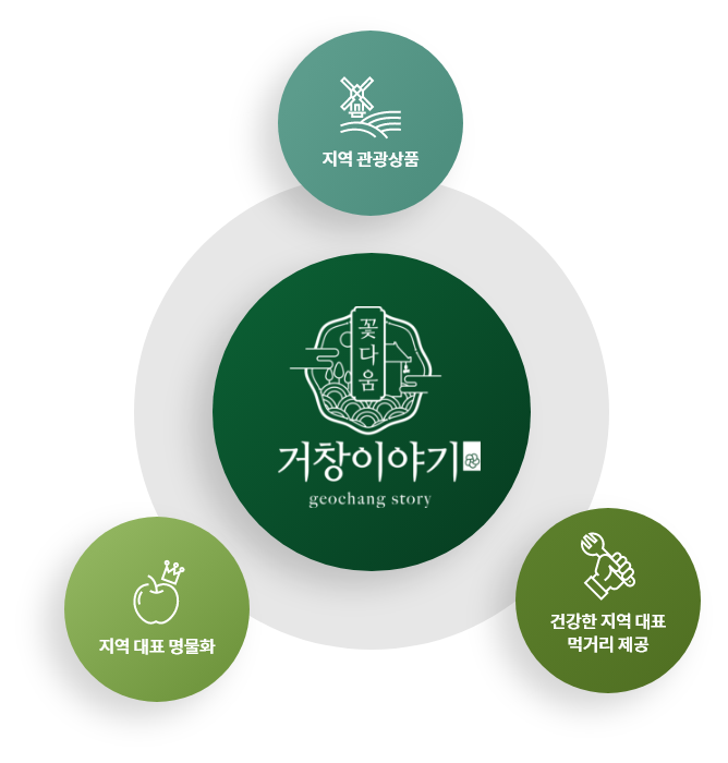 거창의 농특산물을 가공한 상품으로 1차 농산물인 사과등 과일류와 고추등 채소류 홍보와 동시에 지역 관광상품 아이템으로 발전